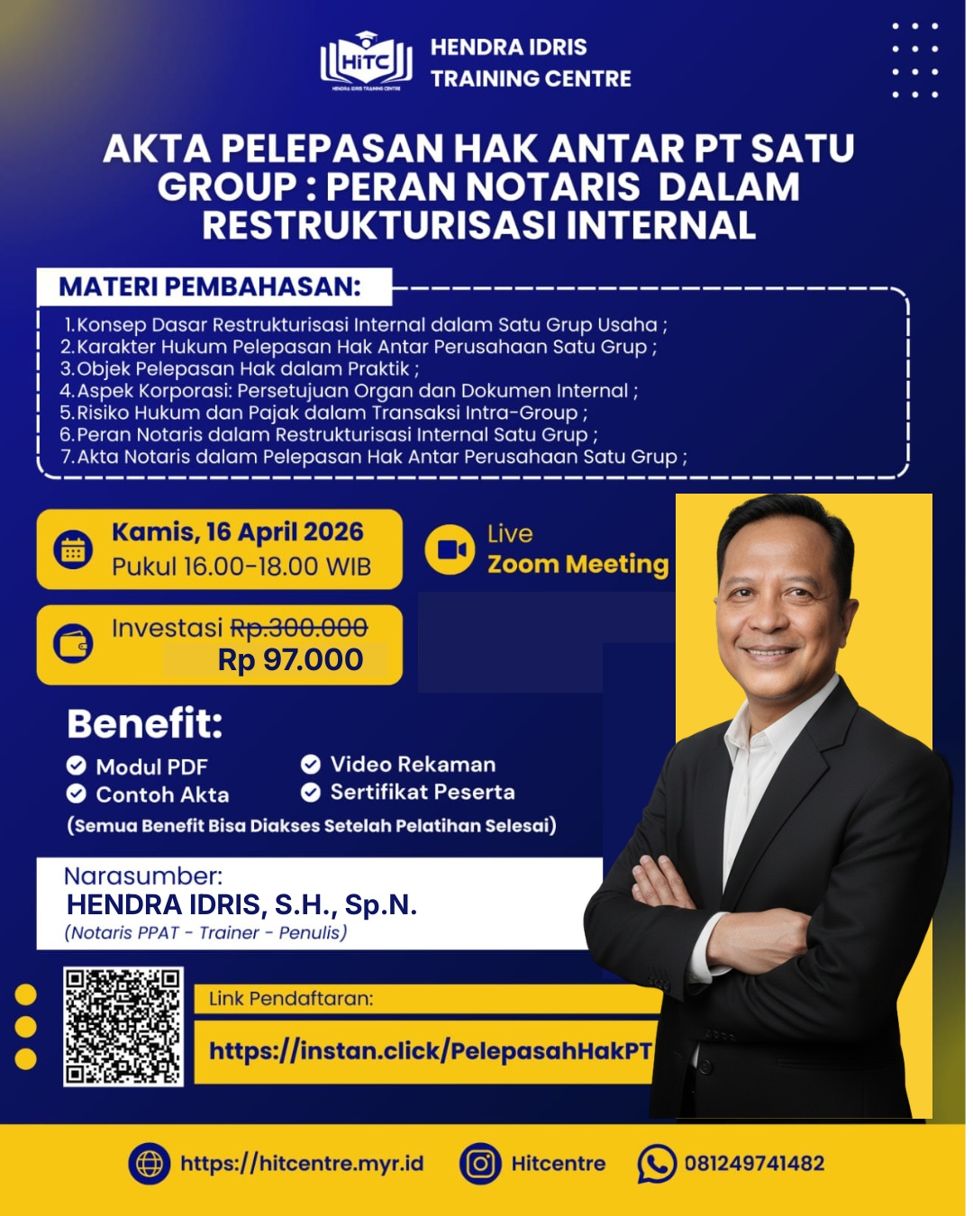5. Akta Pelepasan Hak Antar PT Satu Grup: Peran Notaris dalam Restrukturisasi Internal, Diselenggarakan pada hari Kamis, 16 April 2026;