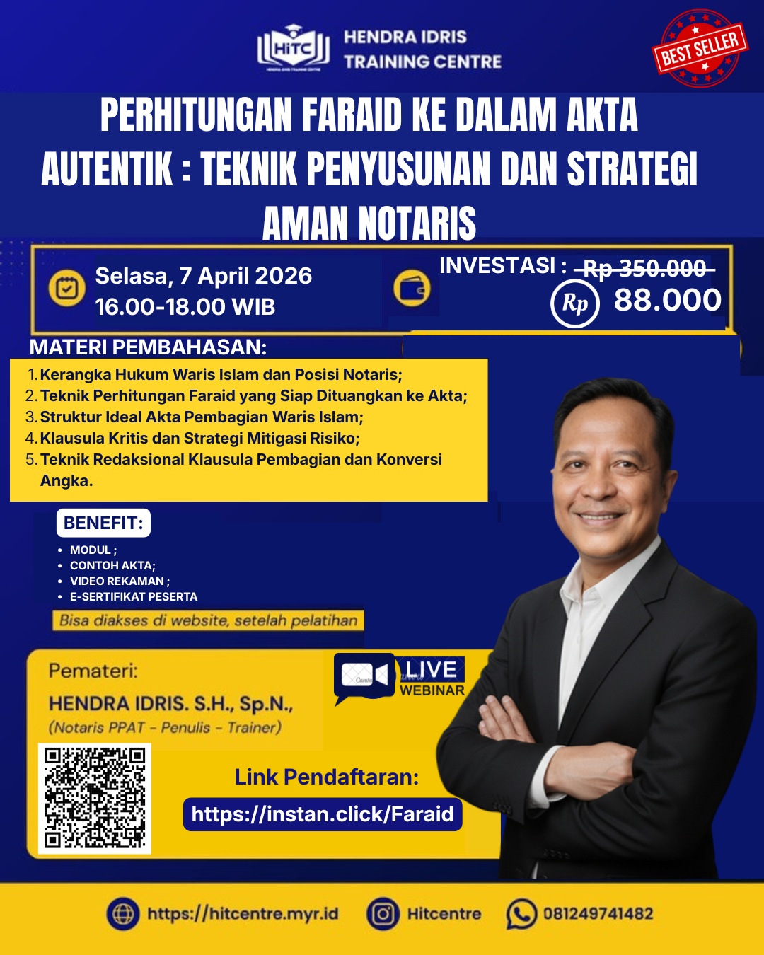 1. Perhitungan Faraid ke dalam Akta Autentik: Teknik Penyusunan dan Strategi Aman bagi Notaris, Diselenggarakan, pada hari Senin, 6 April 2026; ;